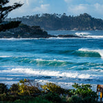 The scene evokes a sense of tranquility and the untamed energy of the Pacific Ocean.