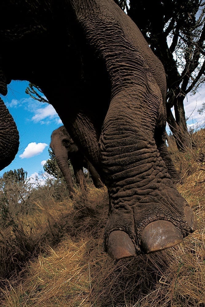 The scene conveys both the majesty and grounded nature of these gentle giants. This shot of an elephant’s foot is one of a kind.
