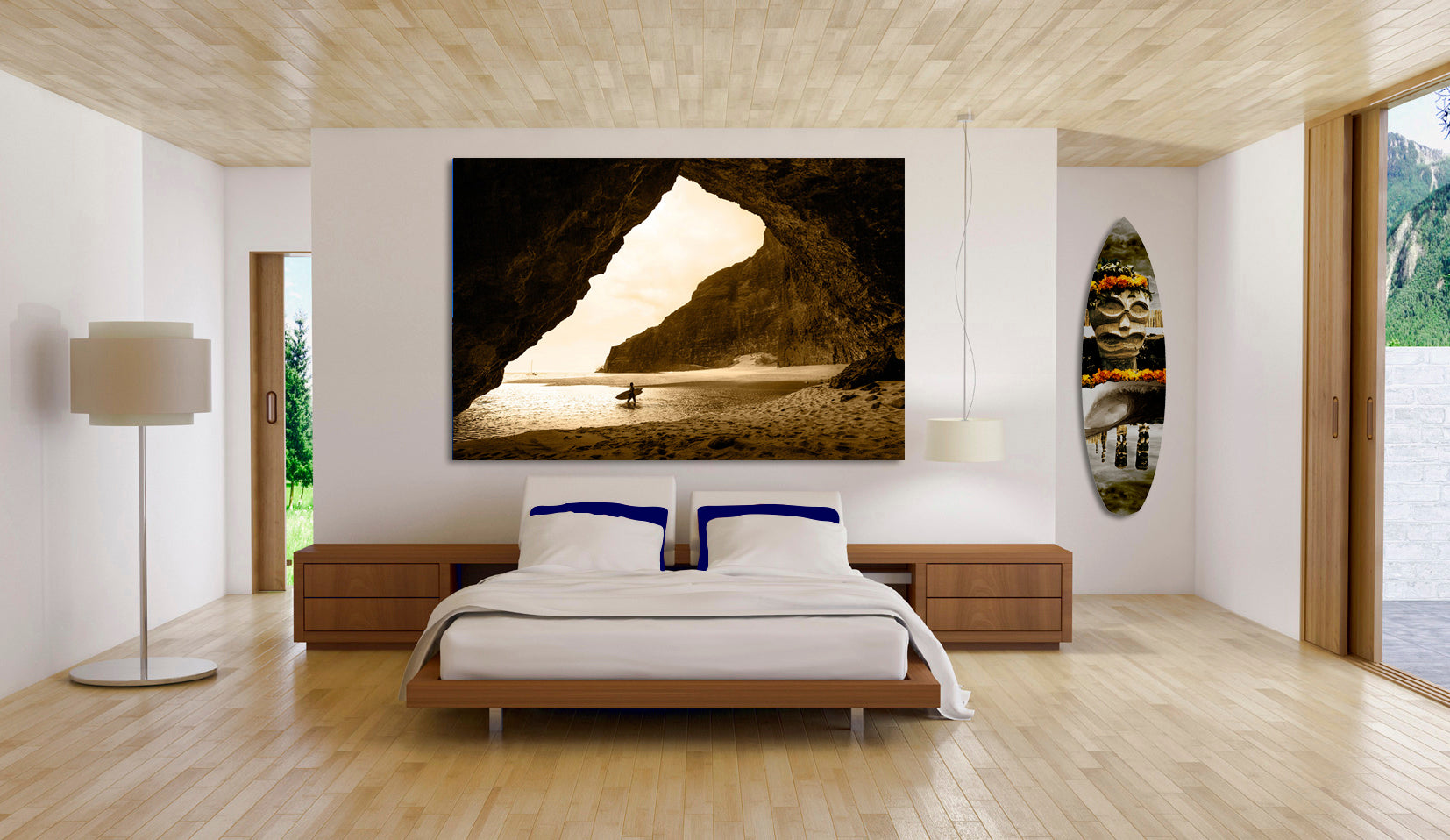 • Due to our ability to customize Aaron’s photographs to our client’s space, our standard sizes, plus any custom sized photos, murals or surfboards, are assigned an edition number for their art. This edition number will go towards the total number of editions created. The clients will receive their signed limited edition with Aaron’s signature, their edition number and the total number of editions printed. For example: 20/95.