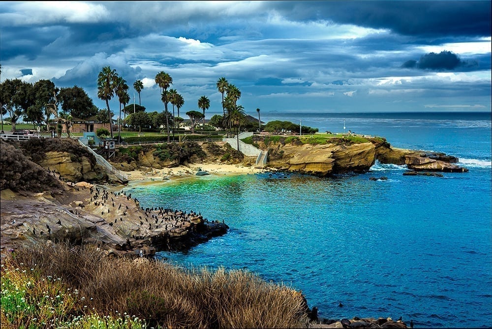 The serene beauty of La Jolla is on full display as the winter sky casts its reflection across the tranquil waters of the ocean and the sheltered cove.