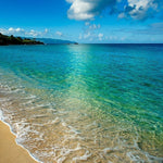 The tranquil tropical tones of the bay invite you to walk along the water's edge, hearing the small waves lap the shore as you feel your feet sinking into the soft cool sand.
