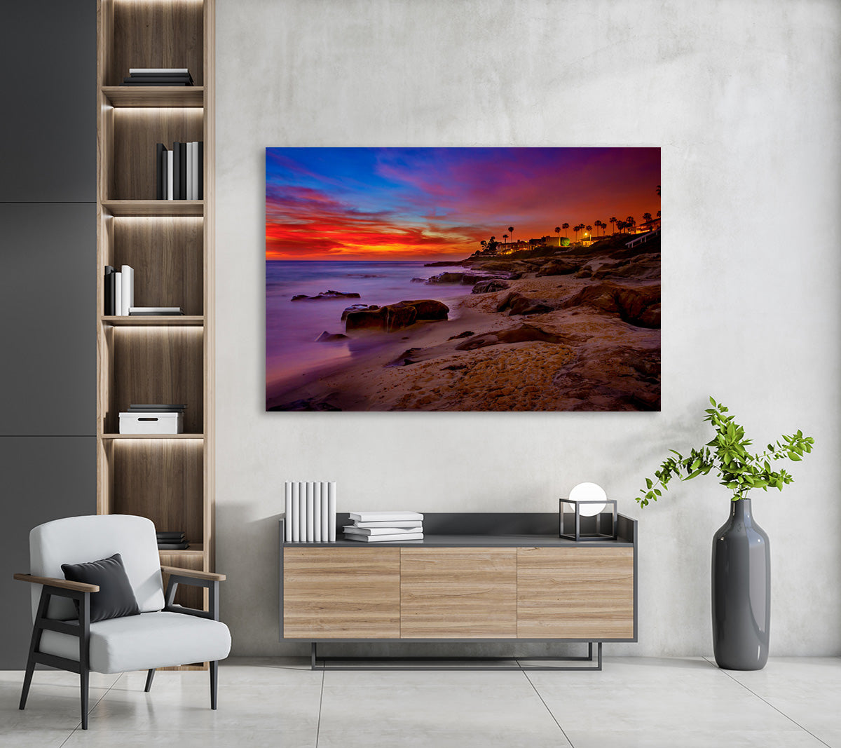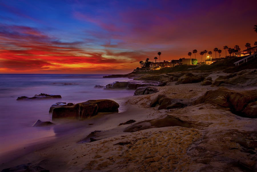 The La Jolla coastline transforms into a breathtaking masterpiece during the afterglow of sunset.
