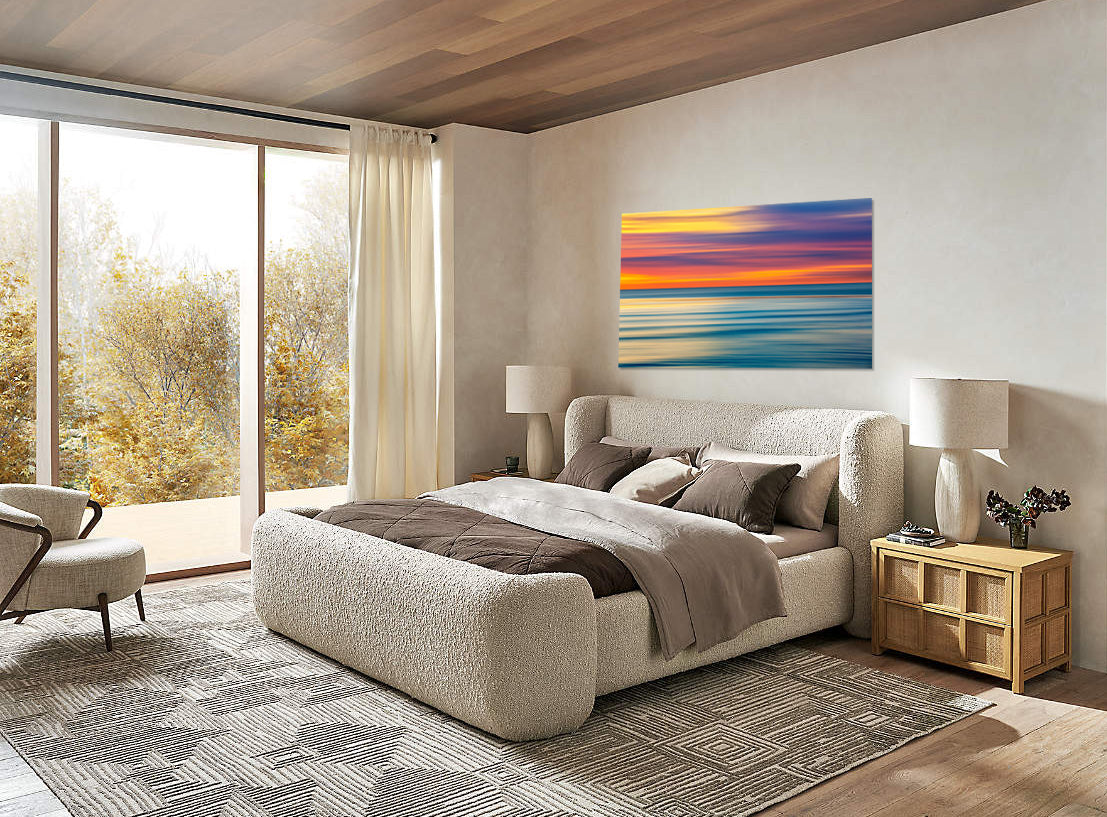 I loved this beautiful abstract photo of the peaceful ocean at sunset so much that it inspired me to redo my bedroom!! I love waking up to this view of the ocean every morning—-a great way to begin my day!!