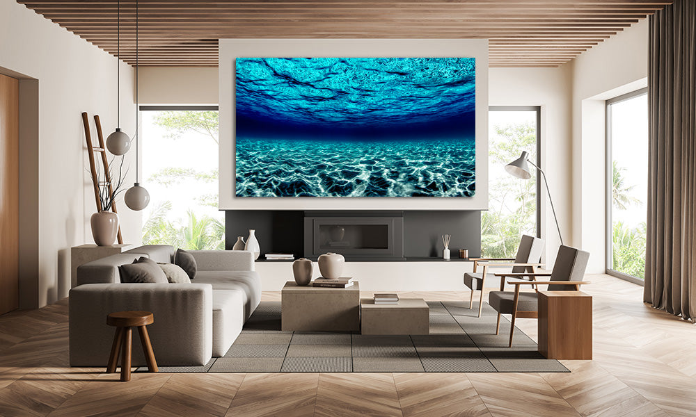 Let yourself be drawn into the mesmerizing embrace of the deep indigo ocean. The photograph’s profound blue tones evoke a sense of infinite calm, inviting viewers to lose themselves in the tranquil expanse. The gradient from shimmering turquoise shallows to the mysterious indigo depths creates a powerful visual journey—one that pulls you ever deeper into the serenity of the underwater world.