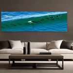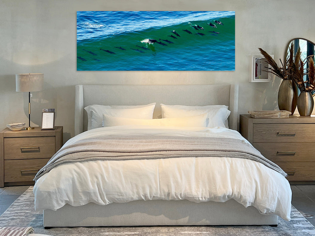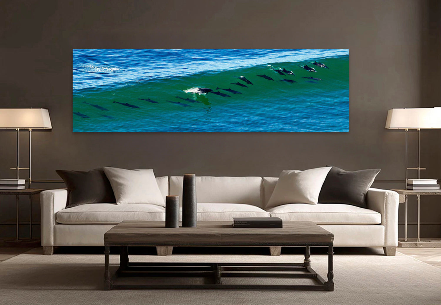 A limited edition of 500. For larger prints, please call the Galleries for pricing. See our best selling 21 Dolphins Short Surfboard or Long Surfboard