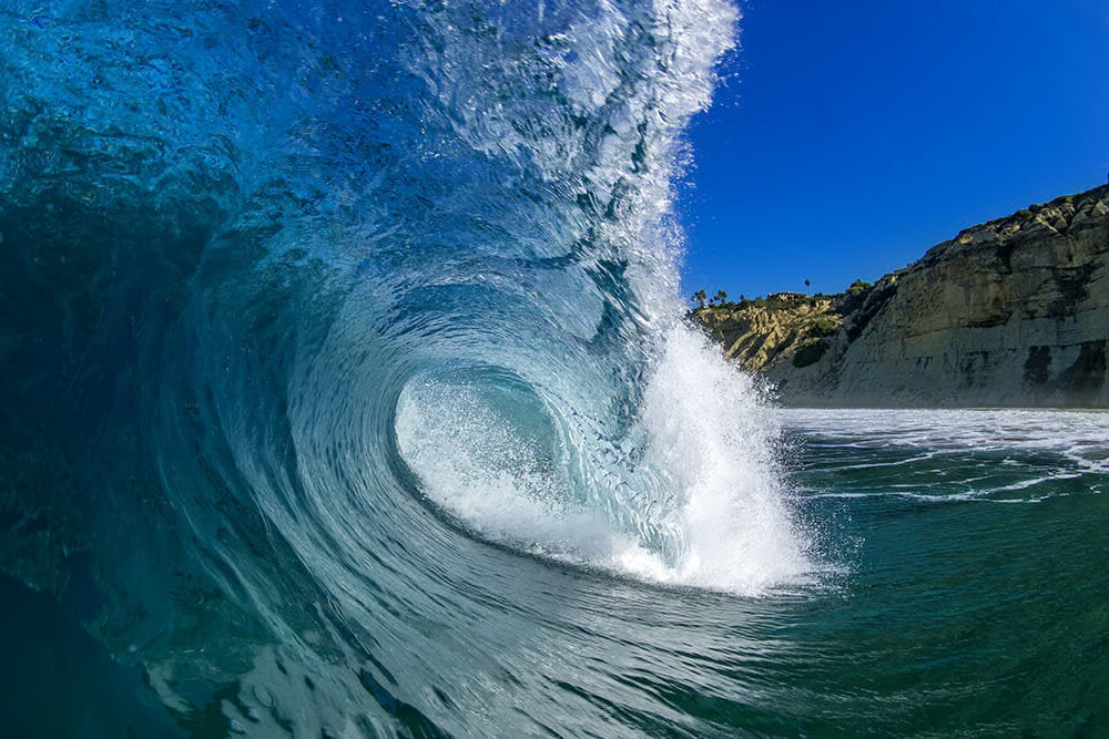Framed by a perfectly formed wave with sandstone cliffs in the background, this photo showcases the raw power and beauty that Black’s Beach is known for, thanks to its unique underwater canyon that creates some of the best and most powerful surf in California.