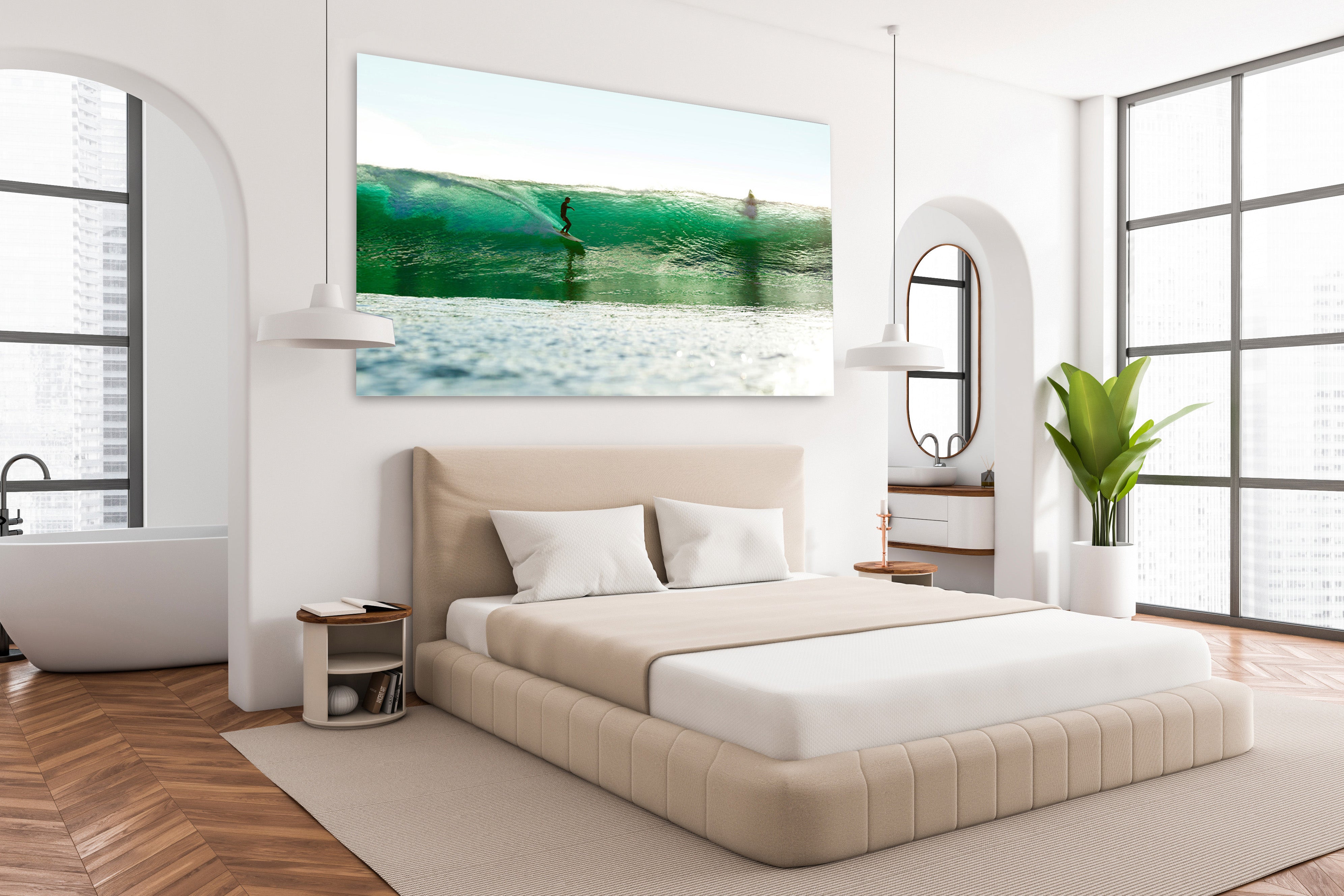 • Due to our ability to customize Aaron’s photographs to our client’s space, our standard sizes, plus any custom sized photos, murals or surfboards, are assigned an edition number for their art. This edition number will go towards the total number of editions created. The clients will receive their signed limited edition with Aaron’s signature, their edition number and the total number of editions printed. For example: 20/95.