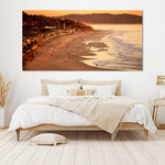 Bathed in warm tones, it depicts people strolling and enjoying the expansive beach during a super low tide, creating a timeless and tranquil scene.