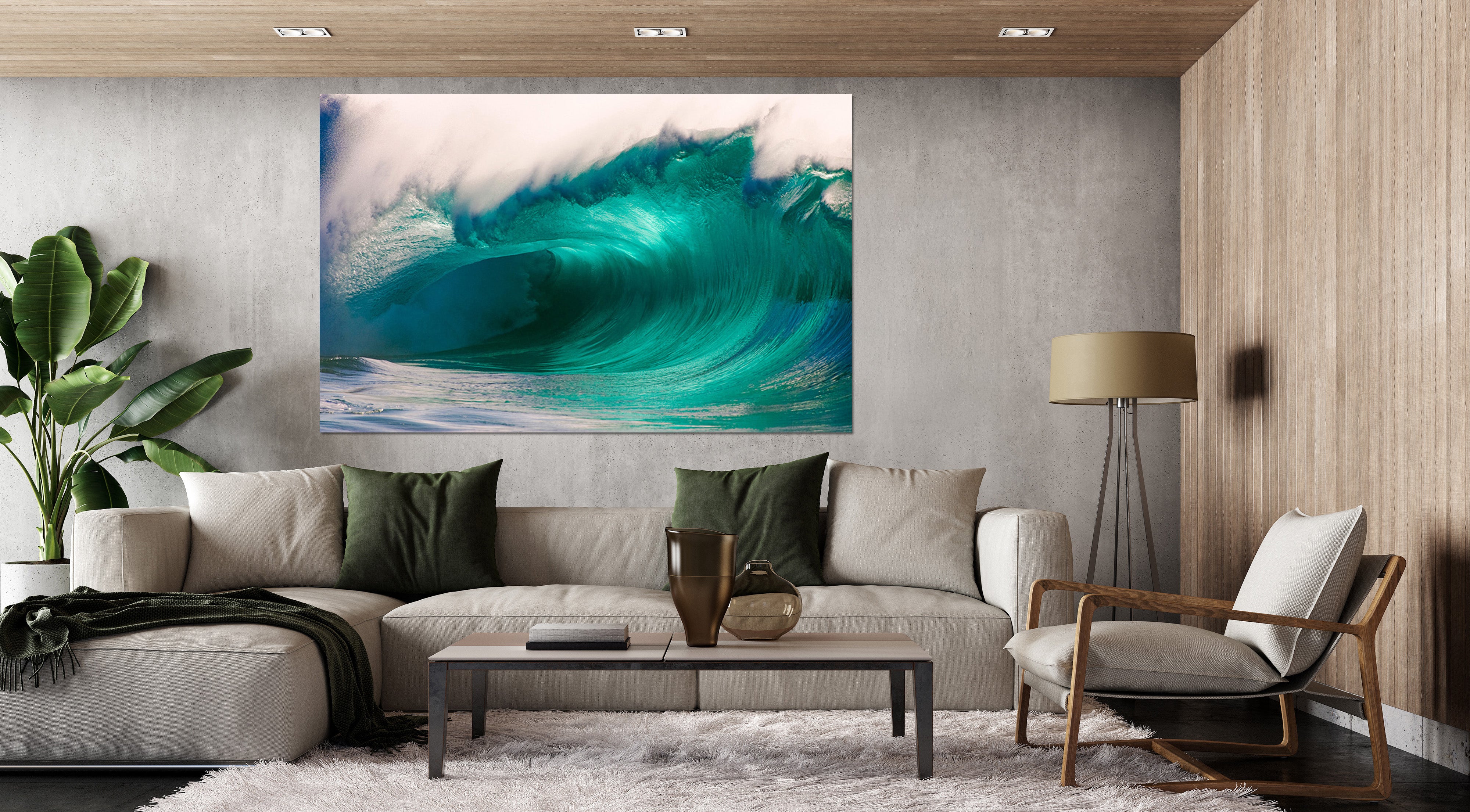 • Due to our ability to customize Aaron’s photographs to our client’s space, our standard sizes, plus any custom sized photos, murals or surfboards, are assigned an edition number for their art. This edition number will go towards the total number of editions created. The clients will receive their signed limited edition with Aaron’s signature, their edition number and the total number of editions printed. For example: 20/95.