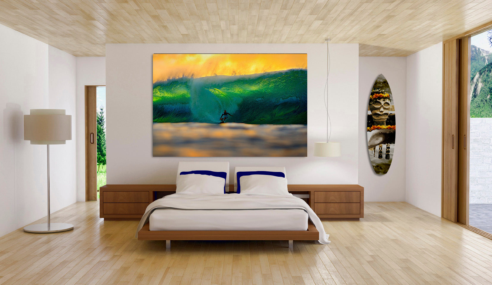 • Due to our ability to customize Aaron’s photographs to our client’s space, our standard sizes, plus any custom sized photos, murals or surfboards, are assigned an edition number for their art. This edition number will go towards the total number of editions created. The clients will receive their signed limited edition with Aaron’s signature, their edition number and the total number of editions printed. For example: 20/95.