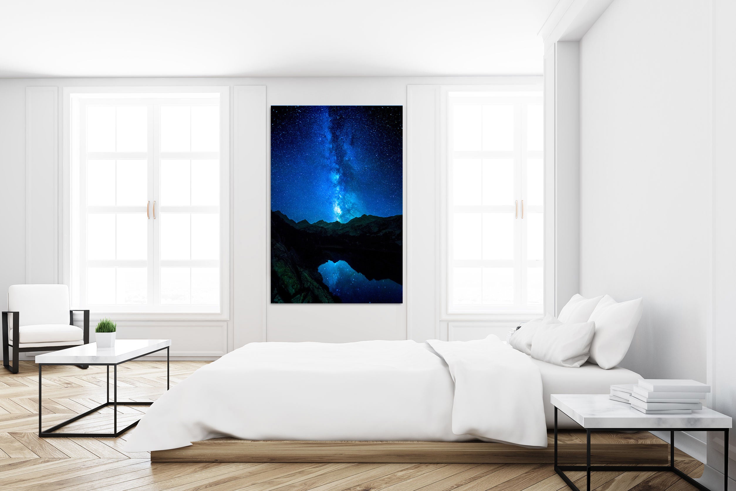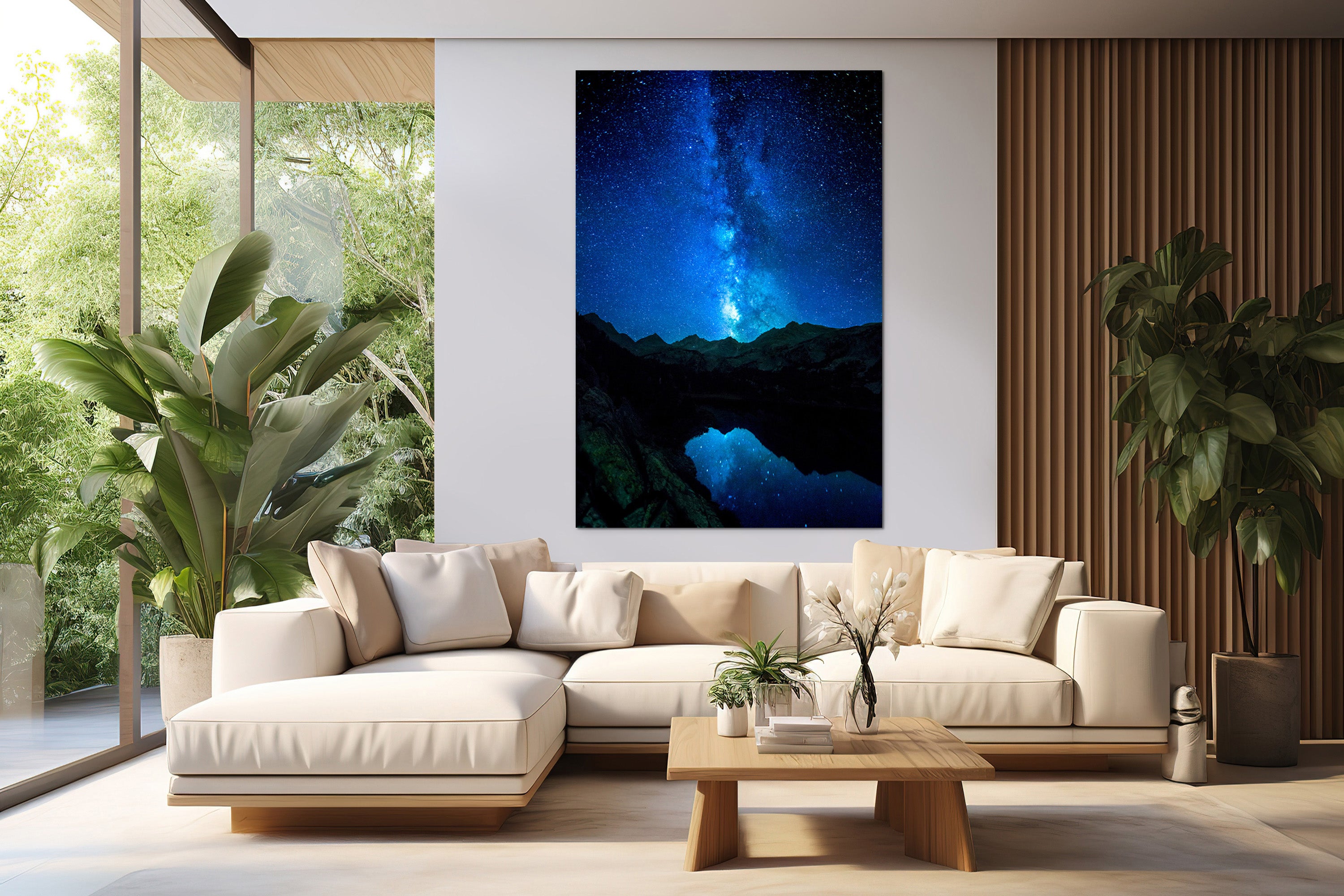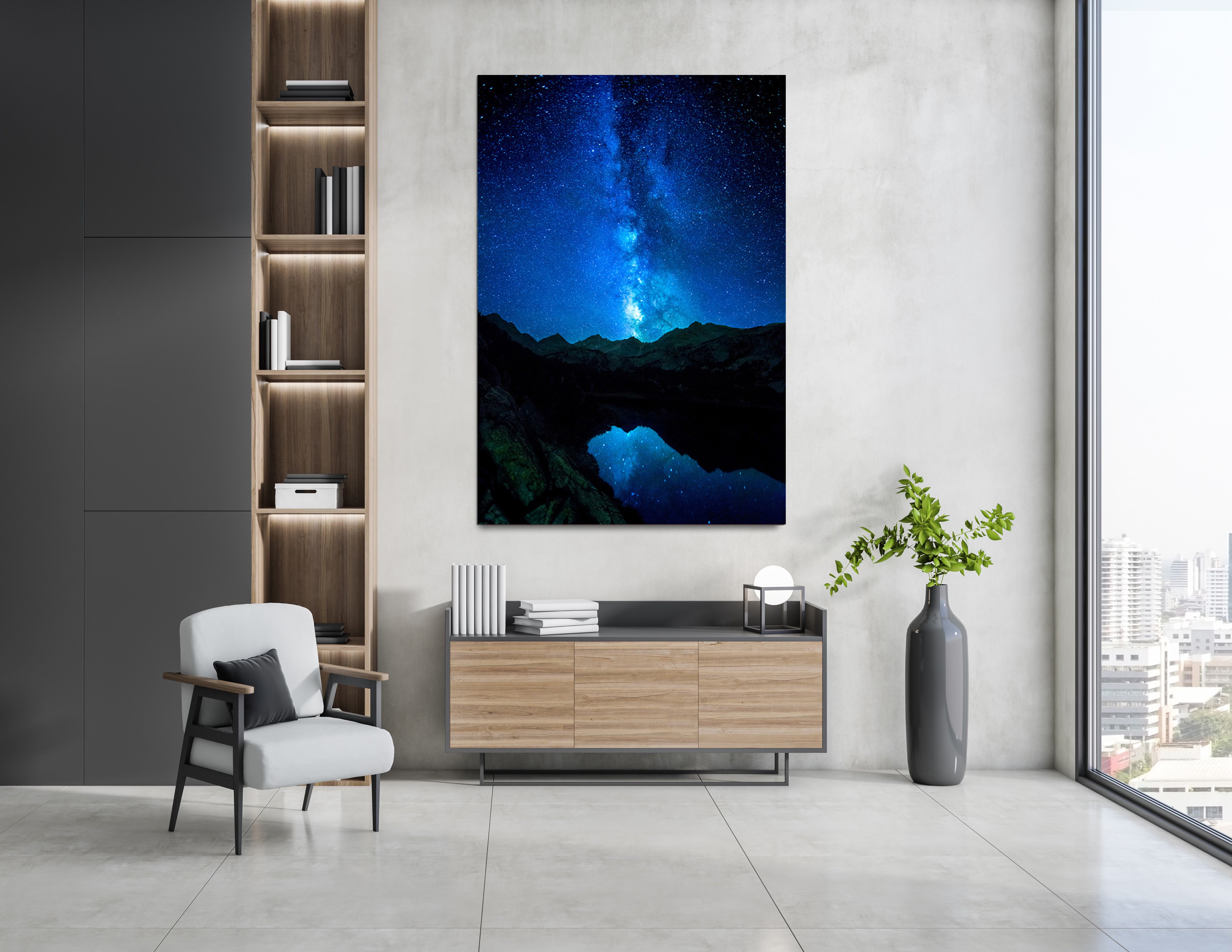 The composition brilliantly balances the dark mountain terrain against the luminous cosmic backdrop, capturing both the grandeur of our galaxy and the serene wilderness landscape in a single, awe-inspiring moment.