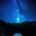 This captivating photograph showcases the magnificent Milky Way galaxy stretching across a deep blue night sky.