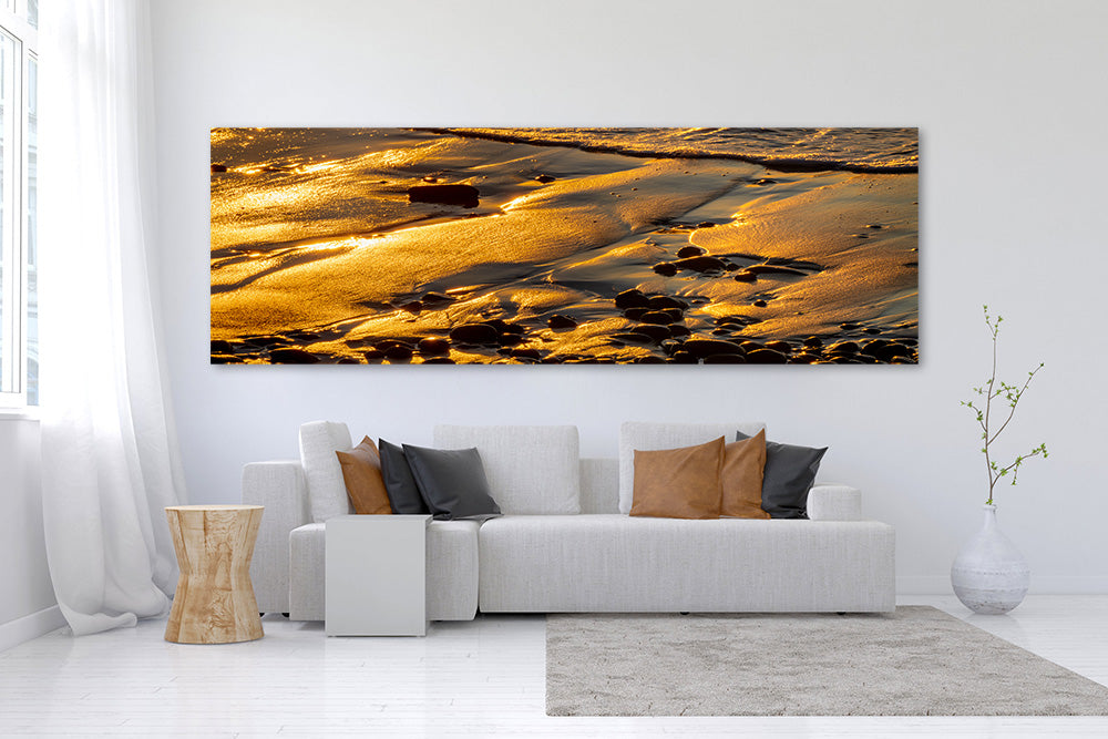 Onyx captures the fleeting magic of a Southern California sunset, where the last golden rays of light dance across the wet shoreline.