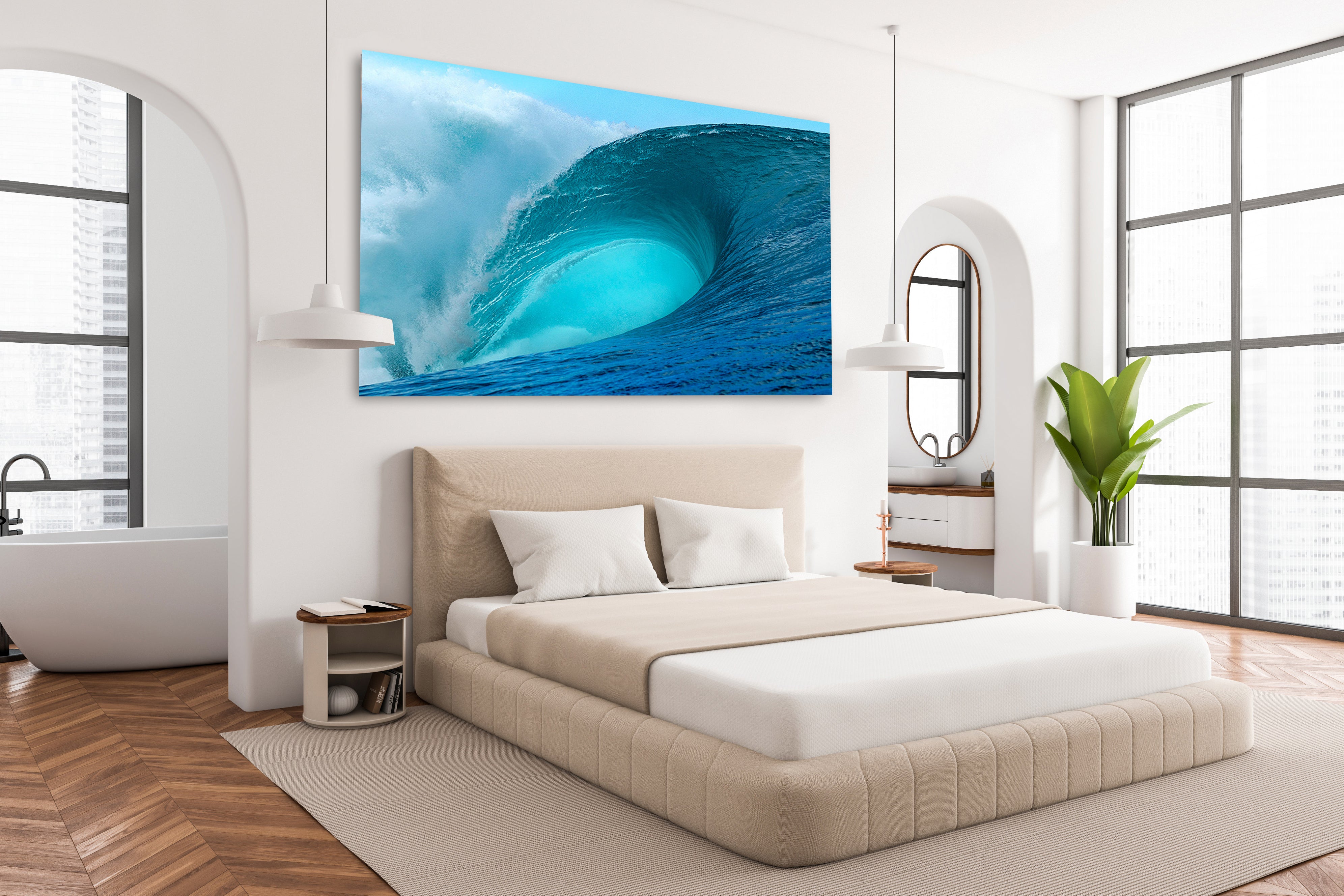 • Due to our ability to customize Aaron’s photographs to our client’s space, our standard sizes, plus any custom sized photos, murals or surfboards, are assigned an edition number for their art. This edition number will go towards the total number of editions created. The clients will receive their signed limited edition with Aaron’s signature, their edition number and the total number of editions printed. For example: 20/95.