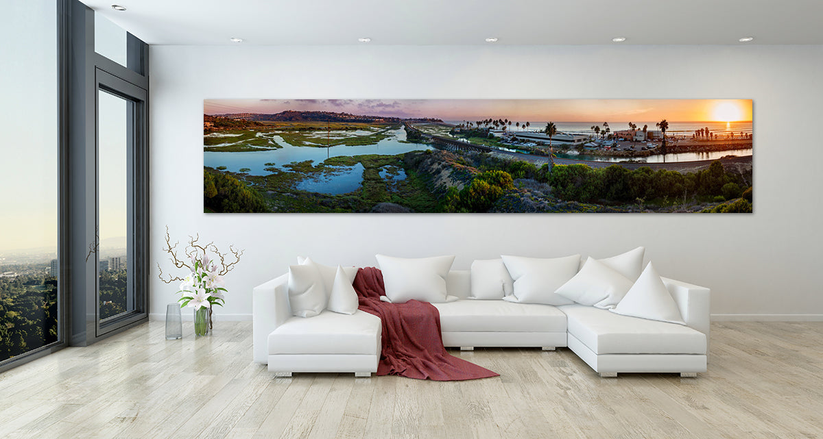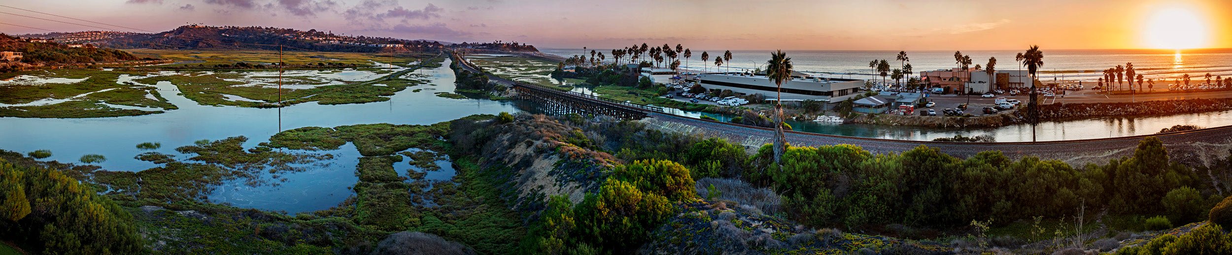 An amazing 180-degree view overlooking the San Elijo lagoon captures the beauty of North County living. Shot at sunset, this larger than life perspective is a photographic technical marvel.