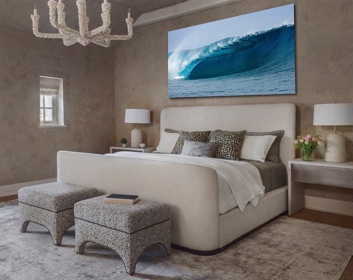• Due to our ability to customize Aaron’s photographs to our client’s space, our standard sizes, plus any custom sized photos, murals or surfboards, are assigned an edition number for their art. This edition number will go towards the total number of editions created. The clients will receive their signed limited edition with Aaron’s signature, their edition number and the total number of editions printed. For example: 20/95.