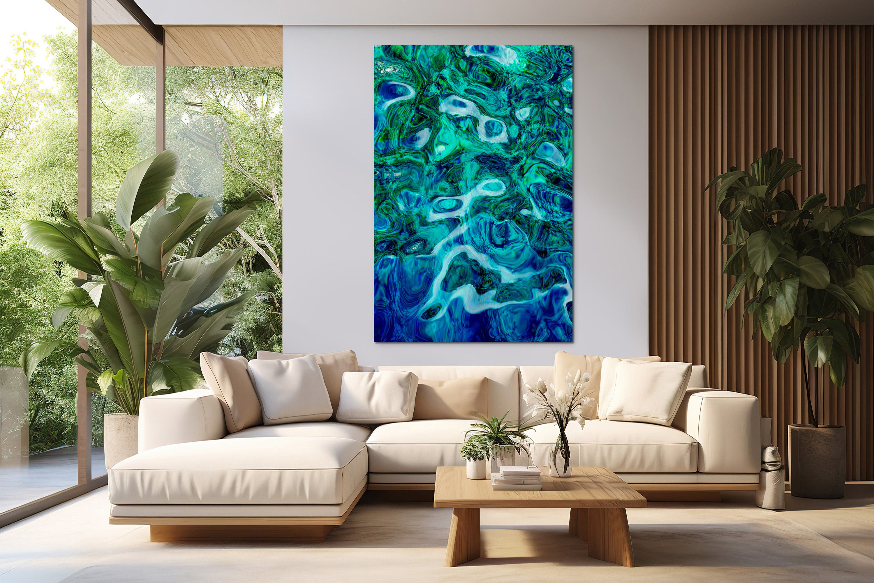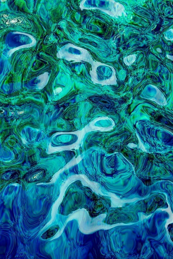 Vivid shades of turquoise and deep blue swirl together in this mesmerizing fine art photo of water being gently stirred by a tropical breeze in Tonga.