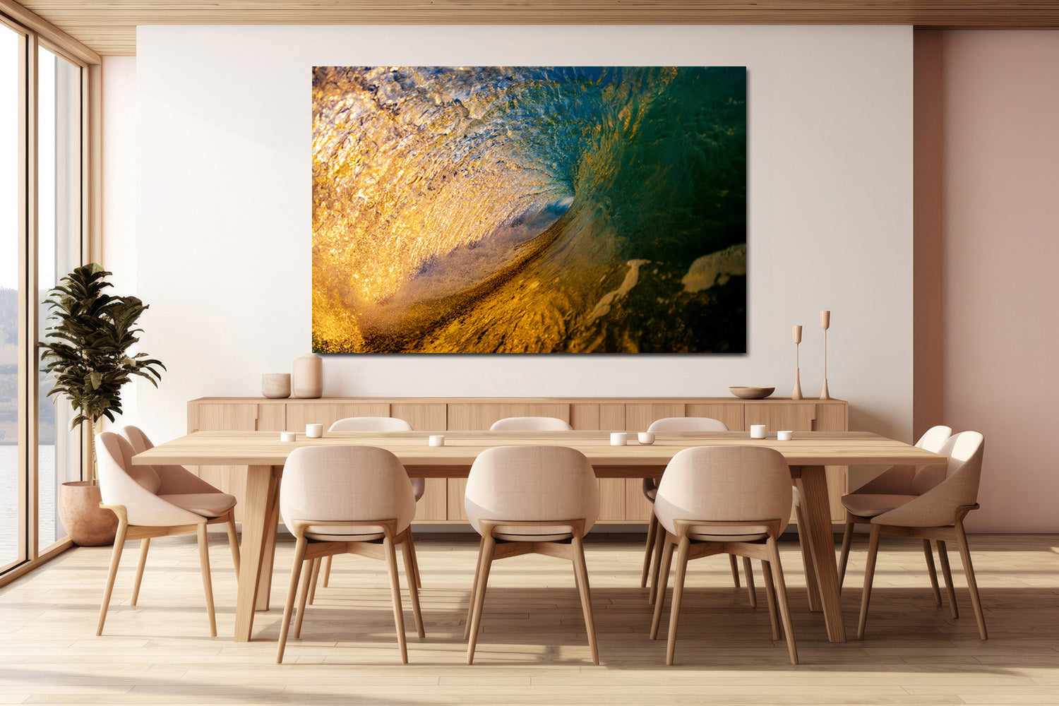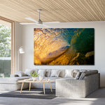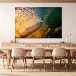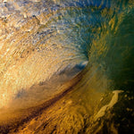 The stunning deep turquoise and luminous gold tones create a natural masterpiece, showcasing the natural beauty of the ocean in all of its morning glory.
