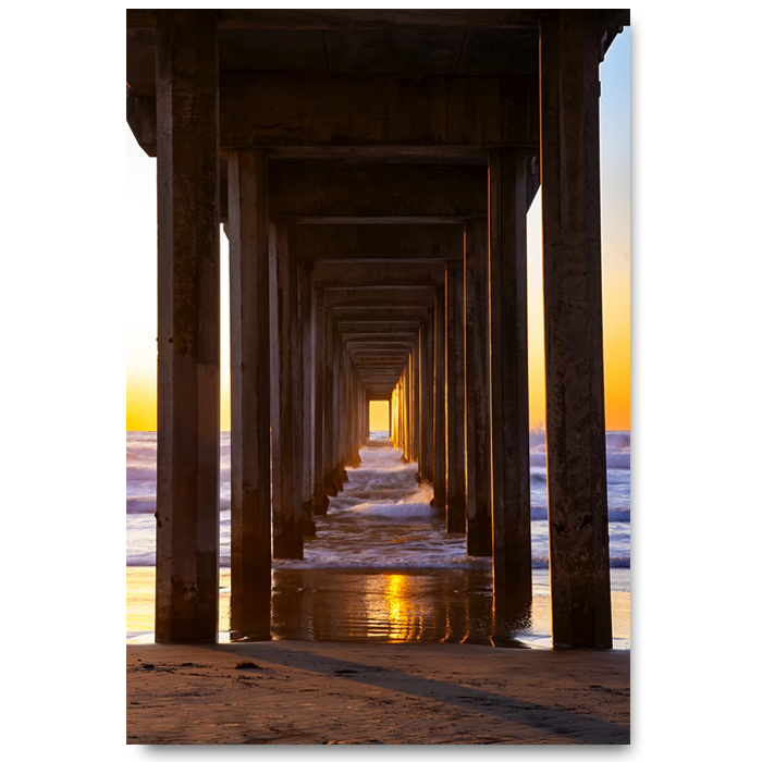Anchored by pillars, washed by the tide, this pier extends into the light, its golden horizon radiating possibility before the ocean’s expanse.