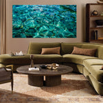 Organic shapes come to life in this exquisite capture of Lake Tahoe’s sparkling waters, where melted snow creates a stunning tapestry of light and color. The lake’s luminescent glow is enhanced by the reflections of the sky, sun, towering pines and gentle summer clouds drifting overhead.