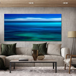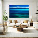 The harmonious color palette of azure, turquoise and deep blue inspires a feeling of sublime stillness despite the implied motion—a paradoxical moment where adventure and perfect peace coexist.