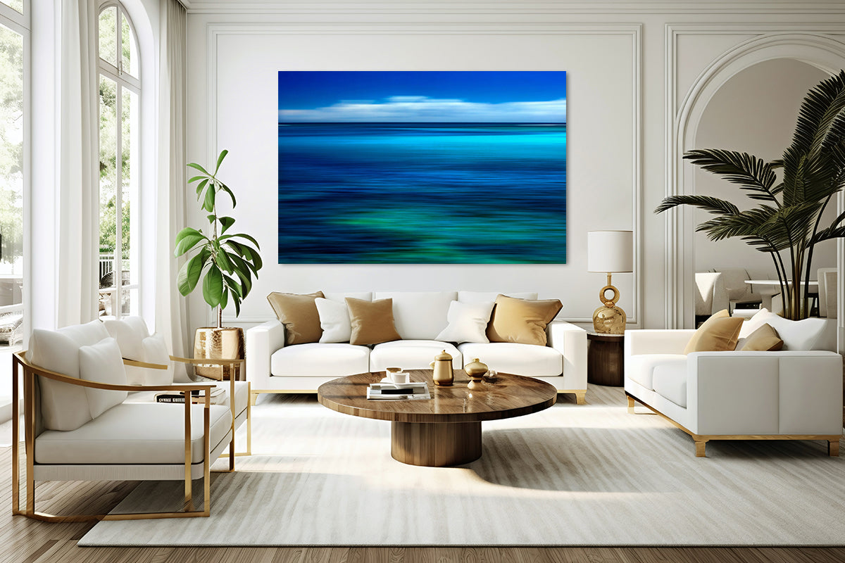 Photographed on the tropical waters of French Polynesia, the sea and sky meld into one in this fine art capture of pure serenity in the South Pacific.