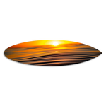 Floating in the Pacific, the sun holds onto the horizon, painting the sky brilliant shades of orange and yellow. A light breeze etches stripes along the water’s surface, creating a dreamlike moment of peace and beauty. Using state of the art pigment printing directly onto fiberglass, this shortboard is printed in high resolution, resulting in tremendous color and depth.