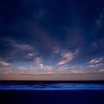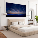 Dark Sky captures the mesmerizing moment where a deep blue twilight sky meets the horizon, adorned with delicate wisps of pink and purple clouds.