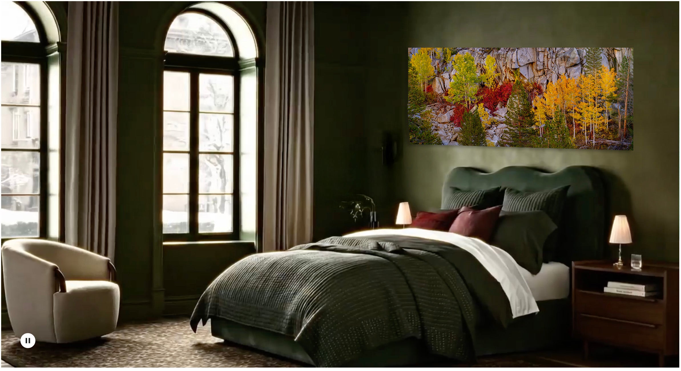 From the crisp, golden light of the Sierra Nevada to the rich, warm hues of the changing leaves, each piece is a portal to a landscape transformed.