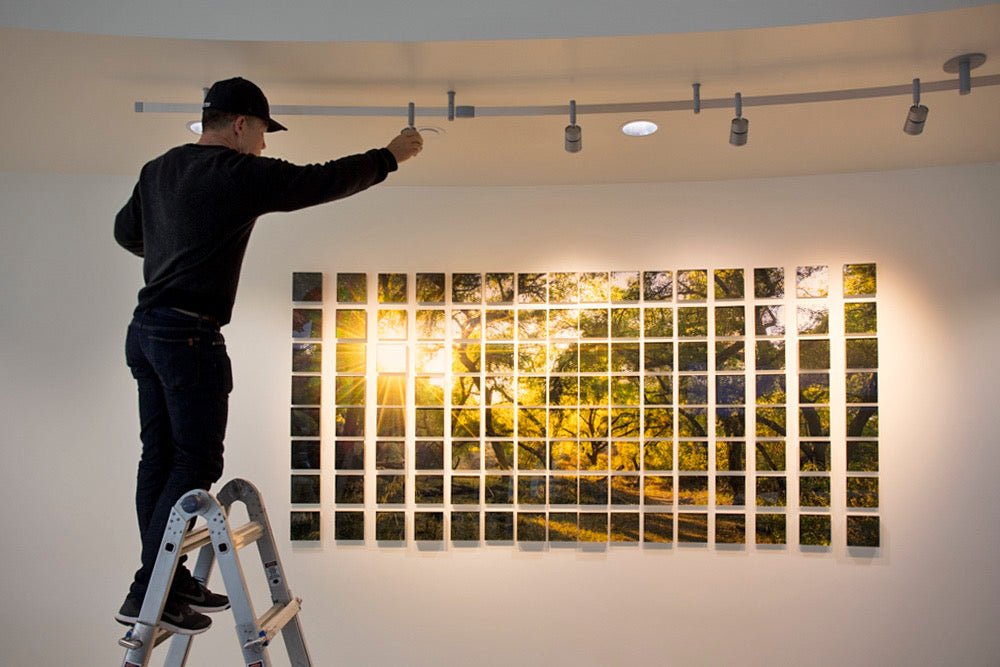 Prints 42”-54” – we recommend two lights parallel to the width of the print, placed 18-24” off the wall with a 8’ ceiling.