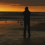 Fiery intensity over the Pacific is reflected on a glassy high tide. Grey clouds turn the ocean slate, making it the perfect palette for the dramatic beauty unfolding. Van Gough-esque swirls in the foreground bring a Starry-Night-kind-of-magic to the moment.