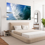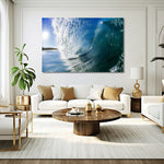The crystalline water, renowned as some of the cleanest on earth, forms a mesmerizing barrel, its intricate textures and vibrant blues shimmering with natural light.