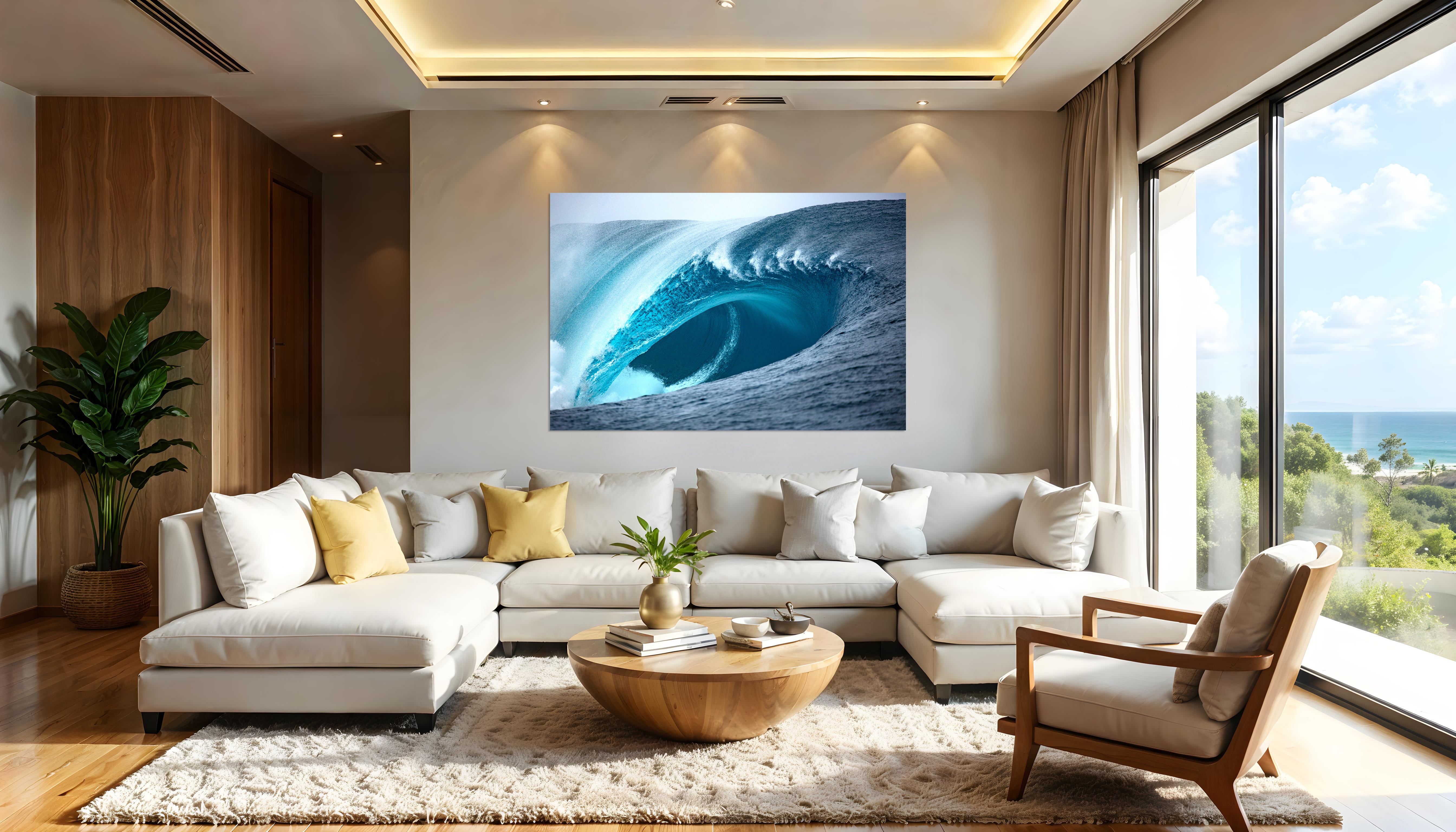 This image reveals a powerhouse wave with perfect form , its textures and motion etched in luminous detail. Beneath its sculpted surface, the swell evokes both awe and reverence for the forces of ocean nature.
