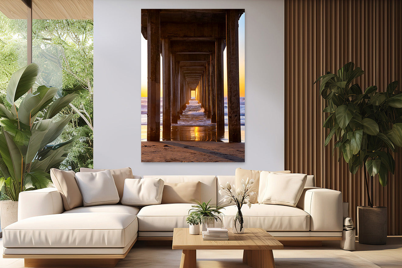 Anchored by pillars, washed by the tide, this pier extends into the light, its golden horizon radiating possibility before the ocean’s expanse.
