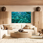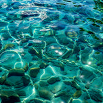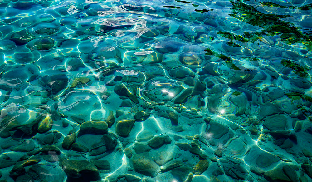 Organic shapes come to life in this exquisite capture of Lake Tahoe’s sparkling waters, where melted snow creates a stunning tapestry of light and color. The lake’s luminescent glow is enhanced by the reflections of the sky, sun, towering pines and gentle summer clouds drifting overhead.