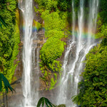 Lush Oasis, an Everyday Art best seller, transports viewers to a magical waterfall nestled amid vibrant, emerald-green foliage.