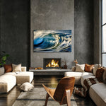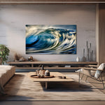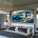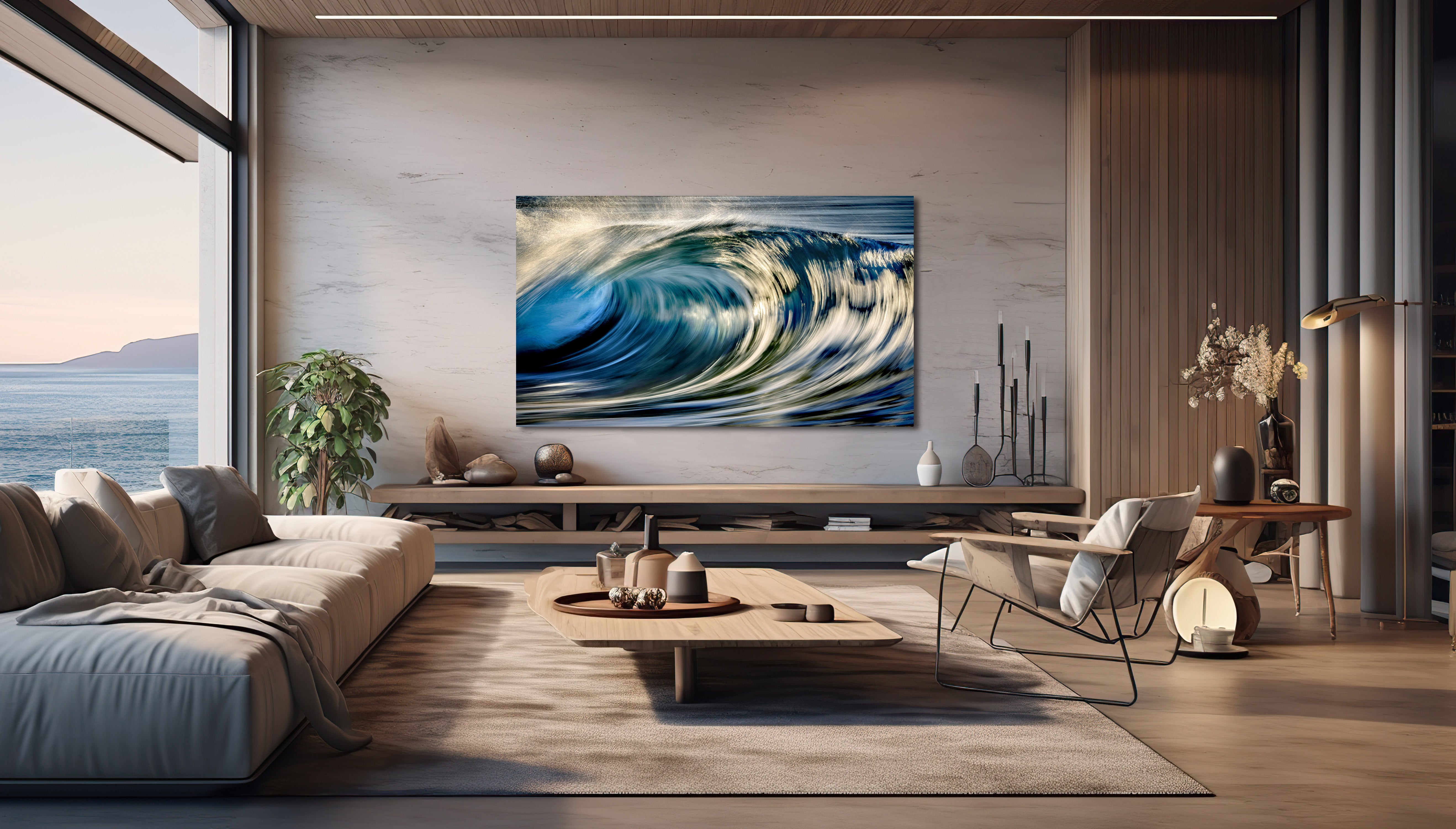 This stunning fine art photograph captures the essence of coastal luxury, featuring a slate-toned Pacific Coast wave illuminated with platinum highlights.