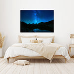 The night sky glows with vibrant blues and silvery whites, drawing the eye upward to the dense cluster of stars and cosmic dust that create an ethereal tapestry overhead. This mesmerizing Everyday Art piece celebrates the awe-inspiring beauty found beneath California’s darkest skies, inviting viewers to dream beyond the horizon.