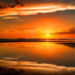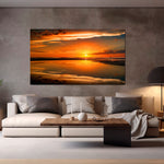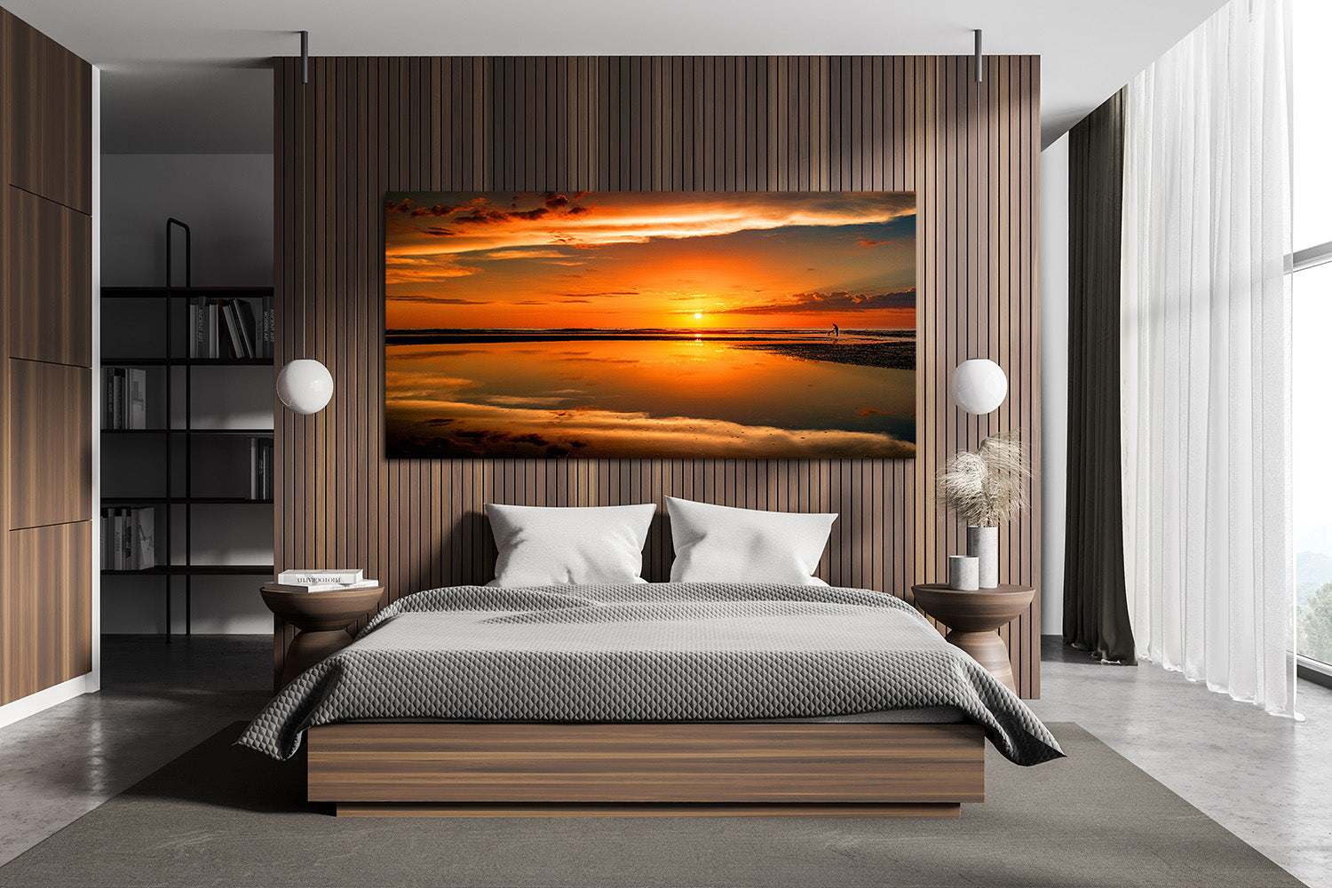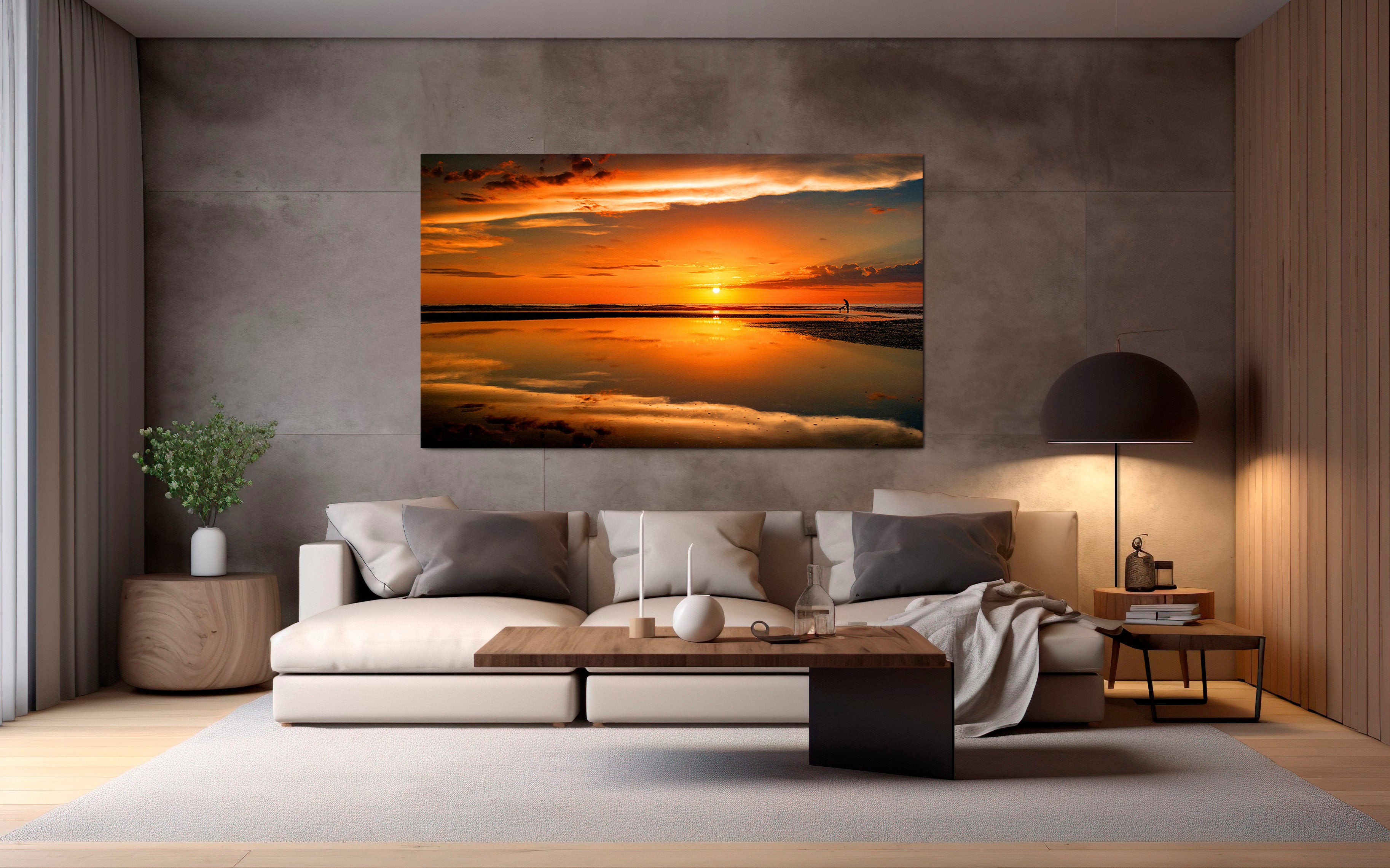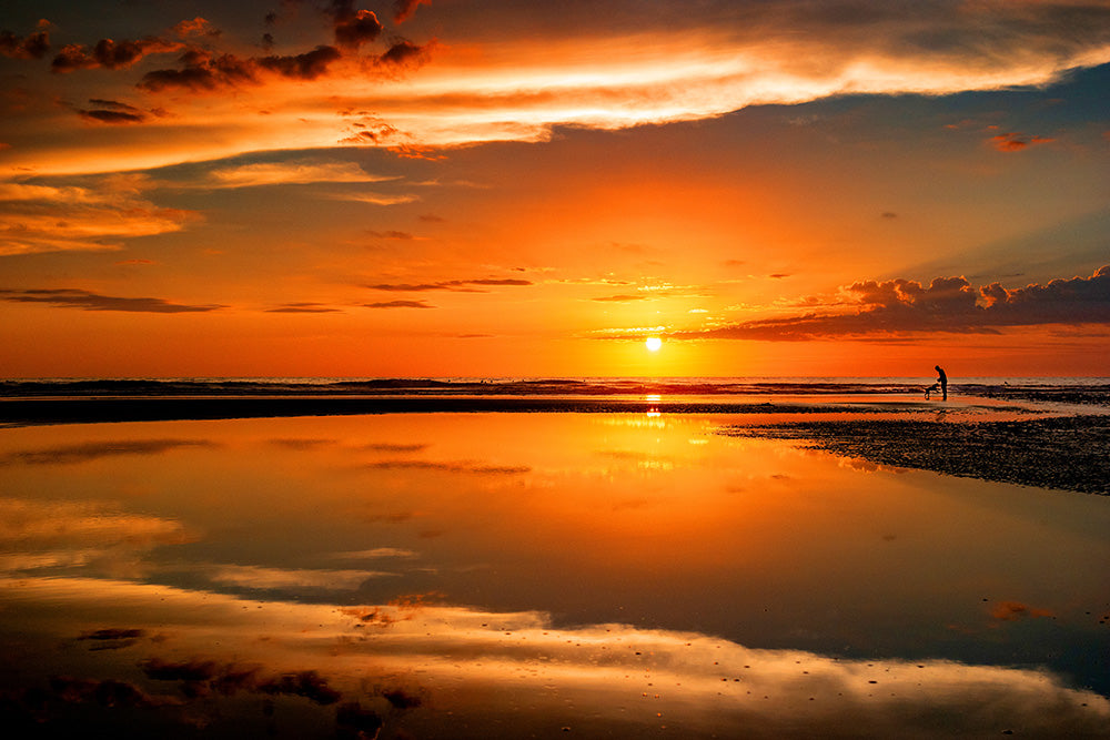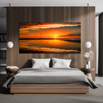 The fiery orange hues of the setting sun cast a magical glow over the scene, creating a perfect end to a carefree day at the beach.
