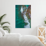 Its overhead perspective reveals the intricate patterns of the shoreline and reef, blending natural textures and vibrant hues to evoke the serenity and allure of coastal living. This piece serves as a daily reminder of nature’s elegance, bringing an atmosphere of peace and wonder into your home.