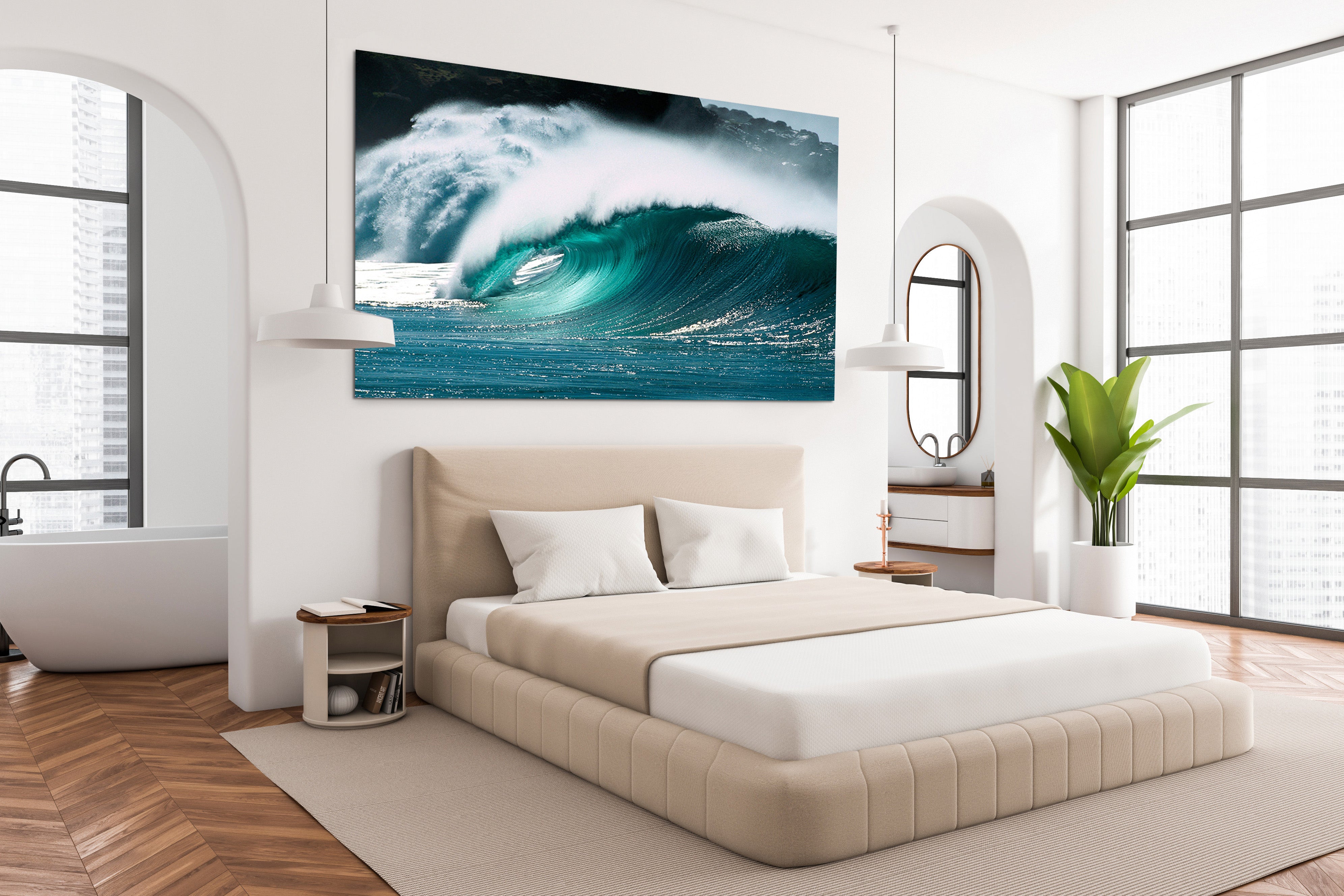 • Due to our ability to customize Aaron’s photographs to our client’s space, our standard sizes, plus any custom sized photos, murals or surfboards, are assigned an edition number for their art. This edition number will go towards the total number of editions created. The clients will receive their signed limited edition with Aaron’s signature, their edition number and the total number of editions printed. For example: 20/95.