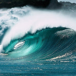 Capturing the wave’s sculptural form and luminous turquoise hues, this photograph transforms a wave breaking at Waimea Bay into an exquisite fine art piece.