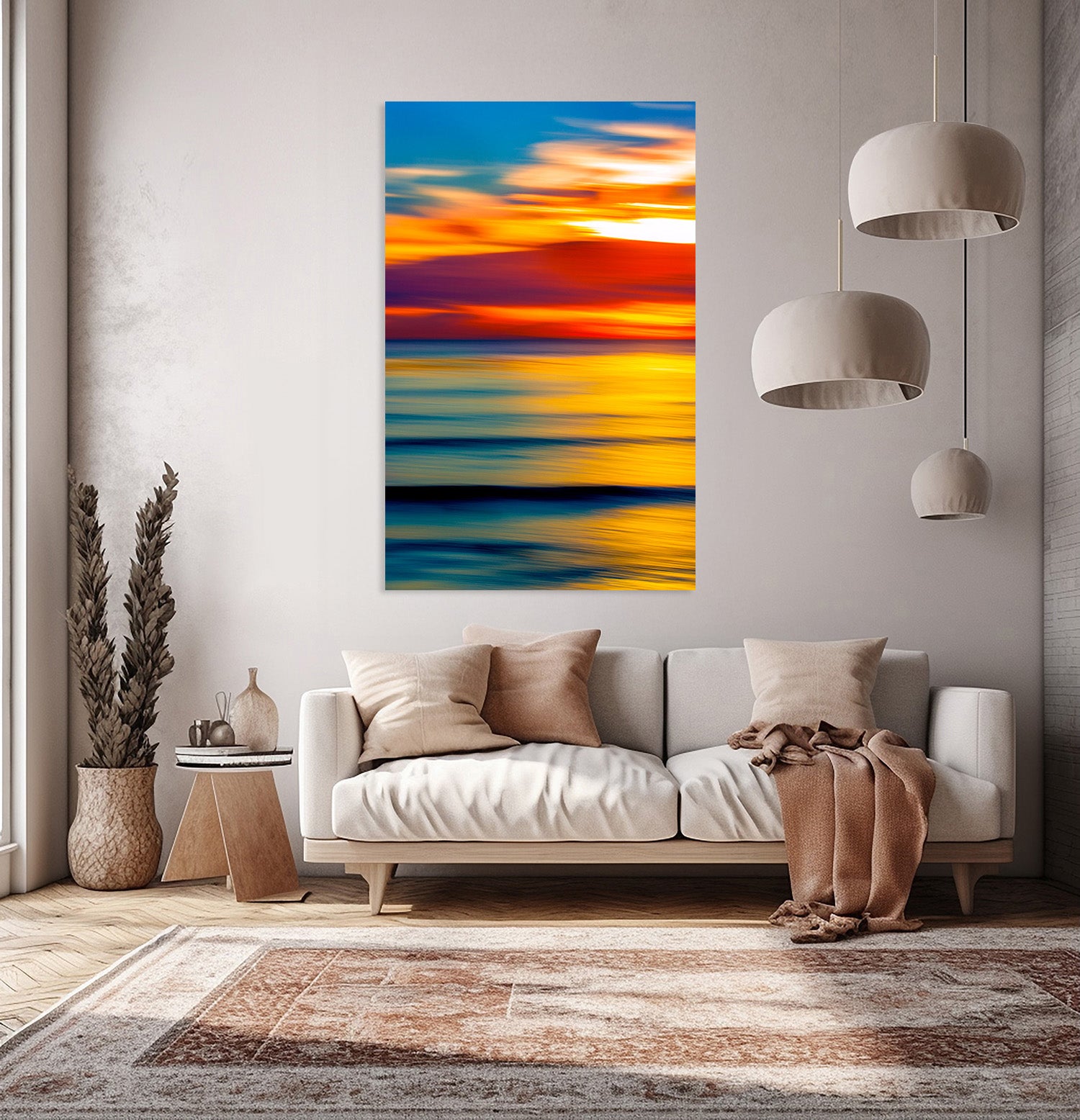 The painting’s sweeping bands of color evoke the tranquil grace of the ocean reflecting the last brilliant light, creating a luminous horizon filled with serenity and wonder. This Everyday Art piece celebrates the fleeting magic of twilight, infusing any space with warmth, beauty, and peaceful reflection.